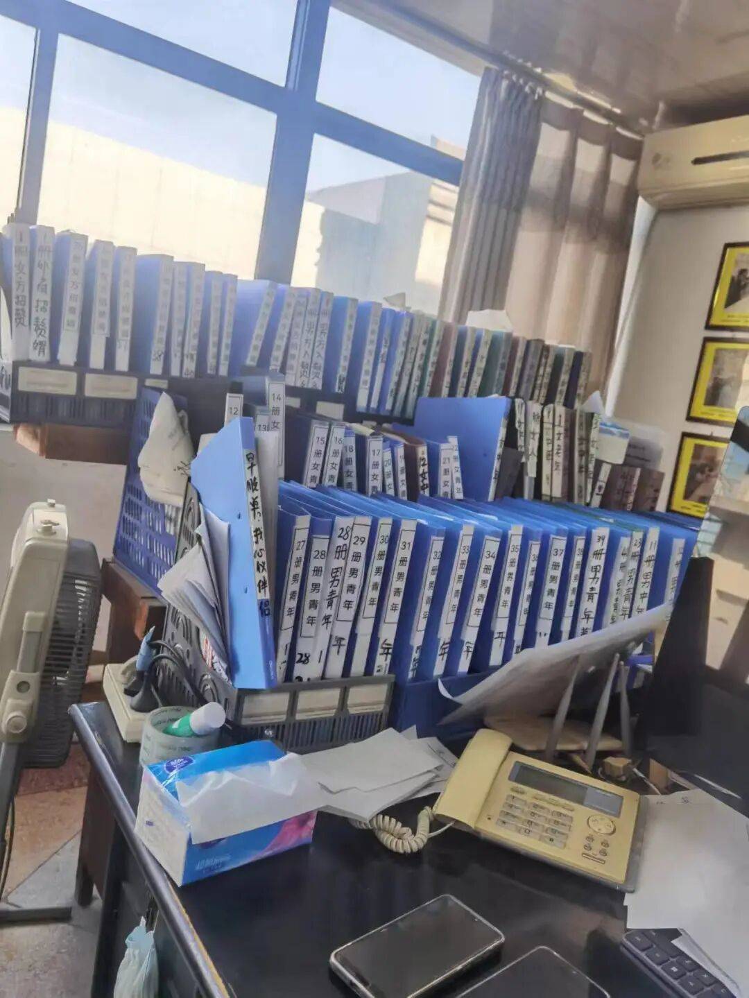 70平方米的办公空间中,沿墙边陈列着一本本的文件夹,拆着婚介所最主要的资产——独身男女的材料。一张长条桌,是他工做的次要阵地,正在这里,他要为独身男女“筹谋恋爱良缘,指导迷津觅爱”。