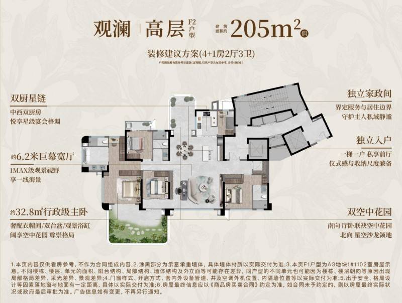 给出亲海四代宅糊口谜底:建面约205㎡户型“所有设想让位于风光”的核芯原则,南向六面宽、近60㎡行政级从卧系统、双空中花圃,以“湾海头排,空中合院”的气宇,演绎墅级栖身体验。