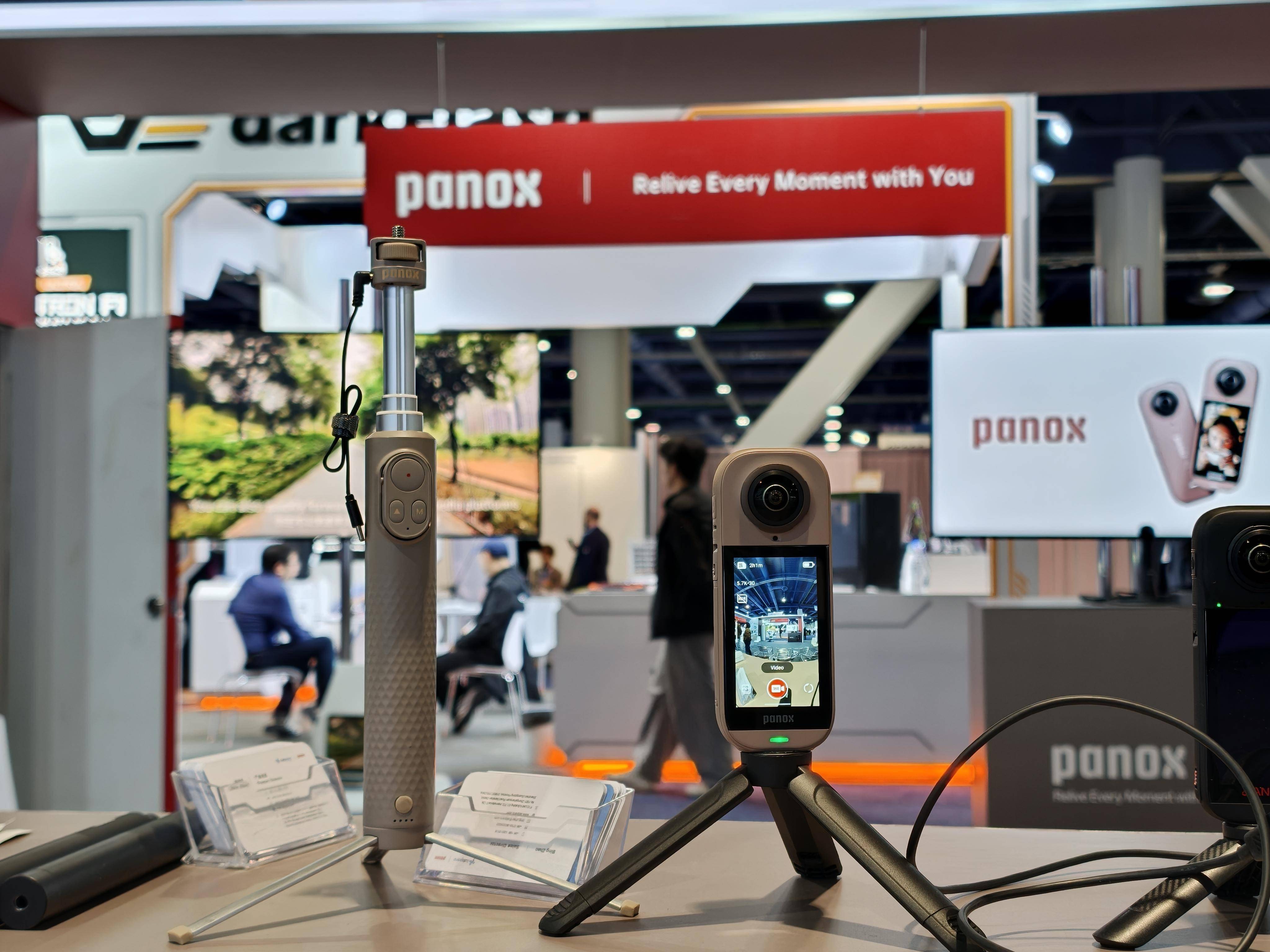 另一家来自深圳的厂商Panox则带来了他们的全新产物——Panox V5。做为全景相机,它取市道上支流的全景相机正在外不雅上大差不差,长处是这个形态确实脚够成熟,还得是内置系统,这使得Panox V5可以或许间接正在机内完成视频拼接。这套思跟我们熟悉的全景相机不太一样:支流全景相机弄法凡是是先拍,然后用户需要从相机里导出素材、期待素材拼接、再二次剪辑导出,而Panox 强调的是把“拍—剪—发”的流程进一步缩短,其所有流程都正在相机内完成。
